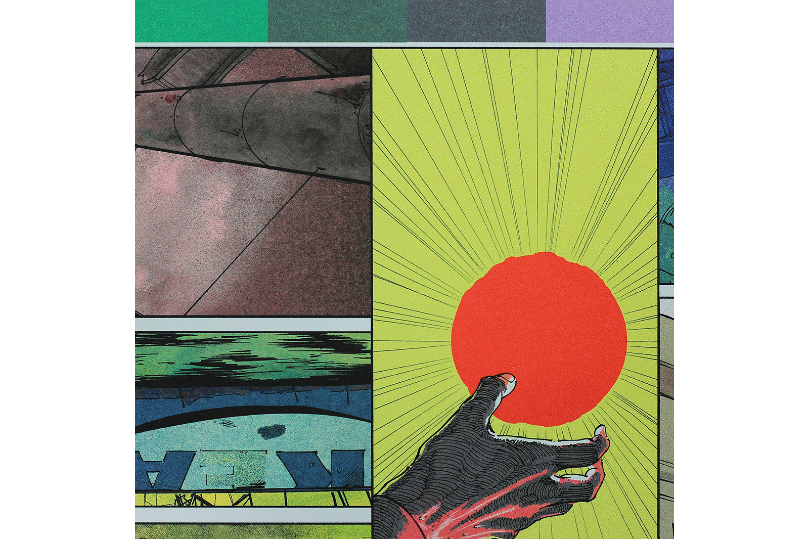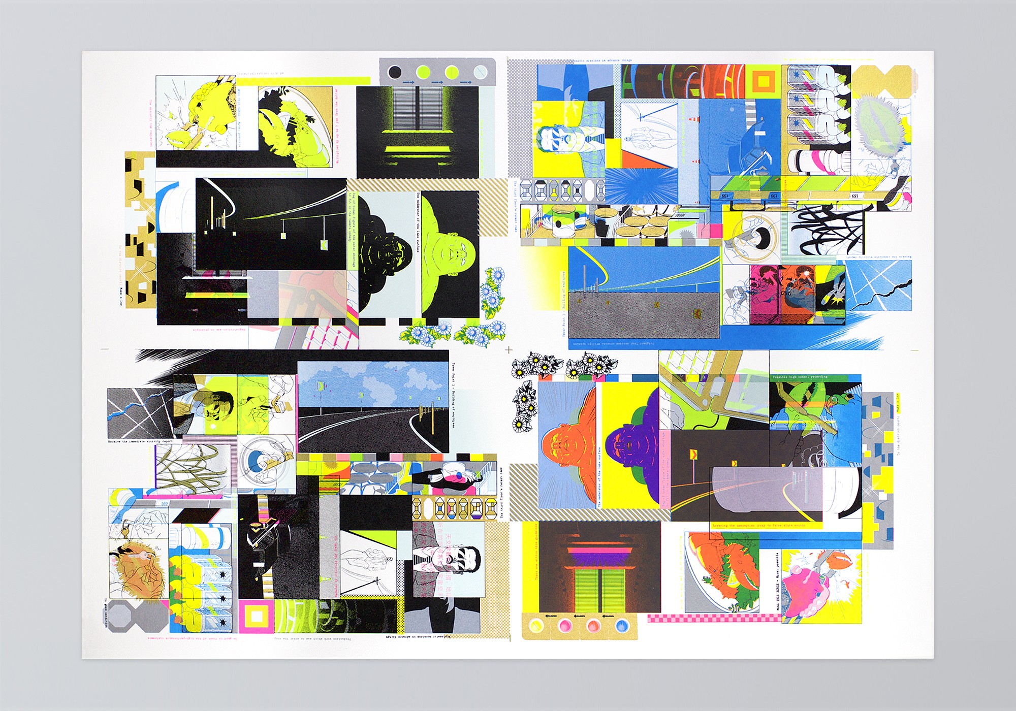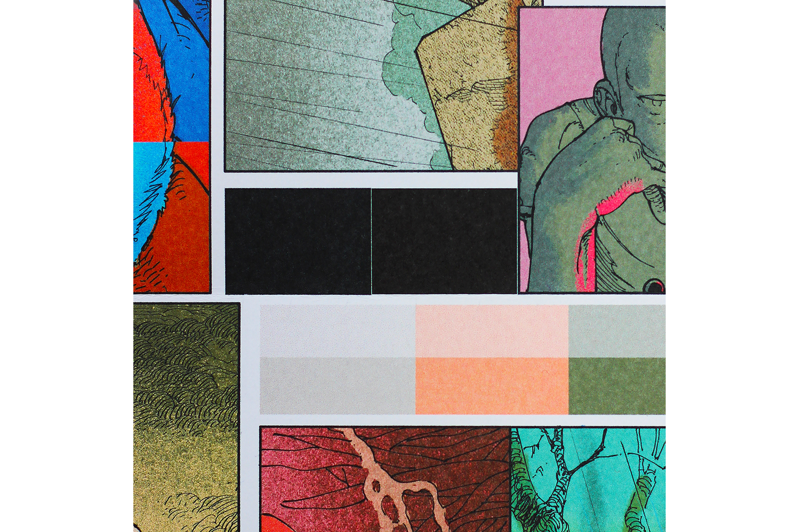 Although L’Arpenteur is tonally distinct, I intended to revisit and integrate elements from my earlier experimental comics, created with British publishing house Landfill Editions. In these earlier books I explored ways to enhance the narrative through paper choice, innovative printing techniques and the use of Pantone spot colors.