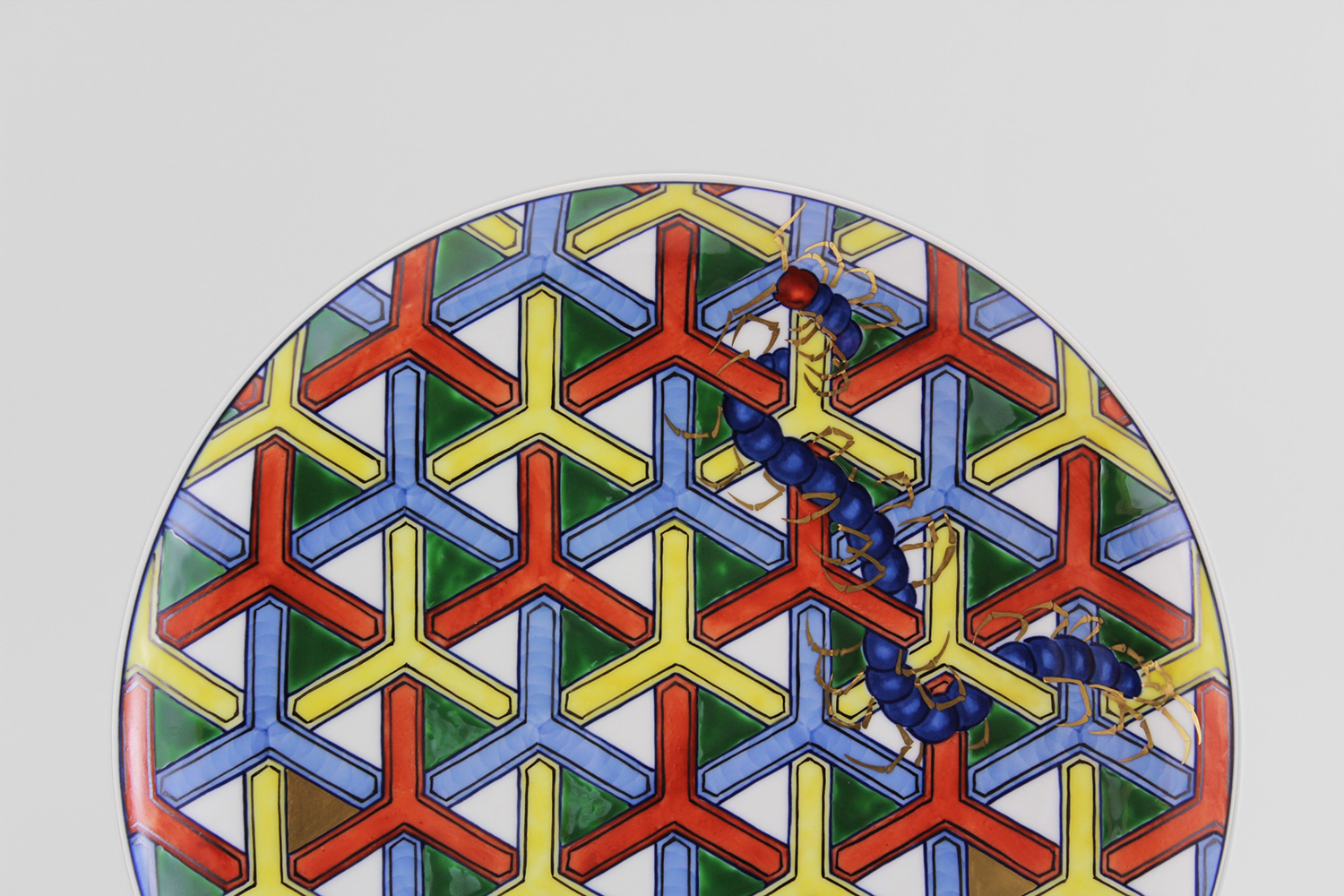 In line with its most obvious predecessor in this series, Bestiarium (2021), L’Arpenteur continues the use of my custom, fully fluorescent color palette. This is a set of colors I’ve been refining for over a decade. These vivid, day-glo hues are ideal for capturing the artificial, otherworldly tones of chemical spills and neon lighting, while also evoking the magical bursts of twilight skies.